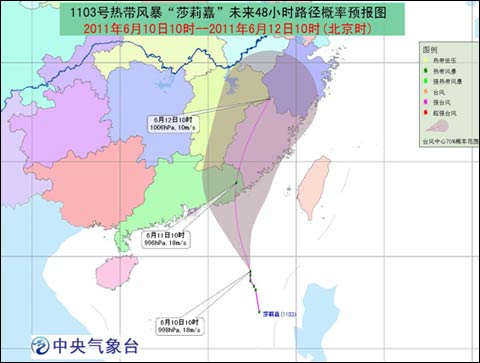 中央气象台2011年6月10日10时发布台风蓝色预警: